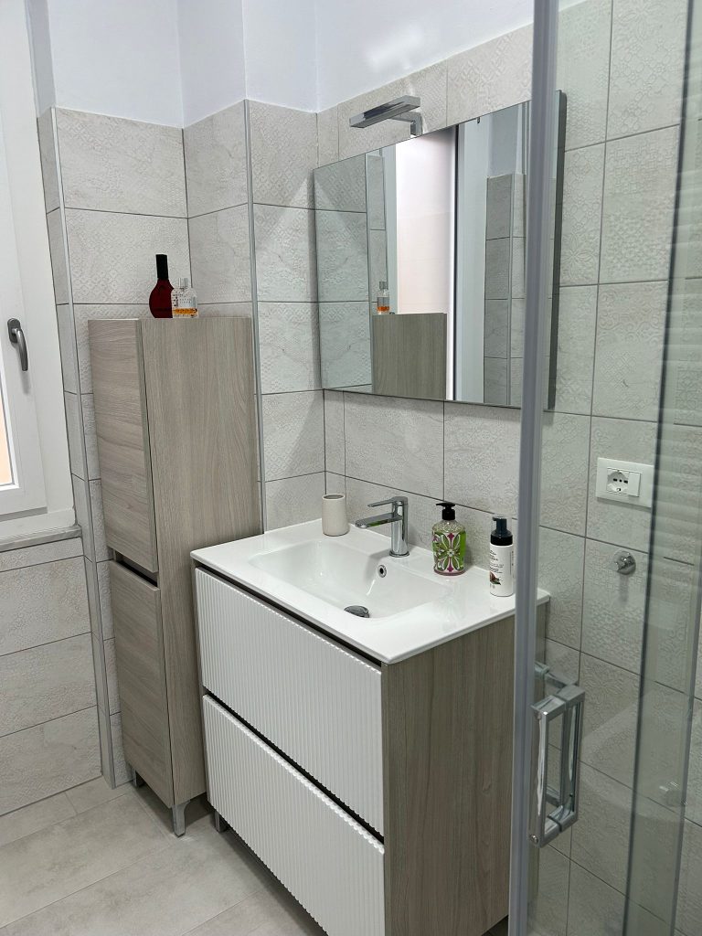• Bagno Finestrato: moderno, con box doccia e finiture di pregio.